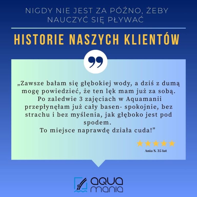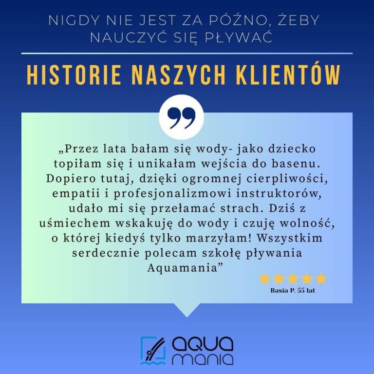 Każda osoba, która trafia do Aquamanii ma swoją historię - czasem pełną lęku, czasem marzeń, ale zawsze z chęcią do przełamywania własnych barier.